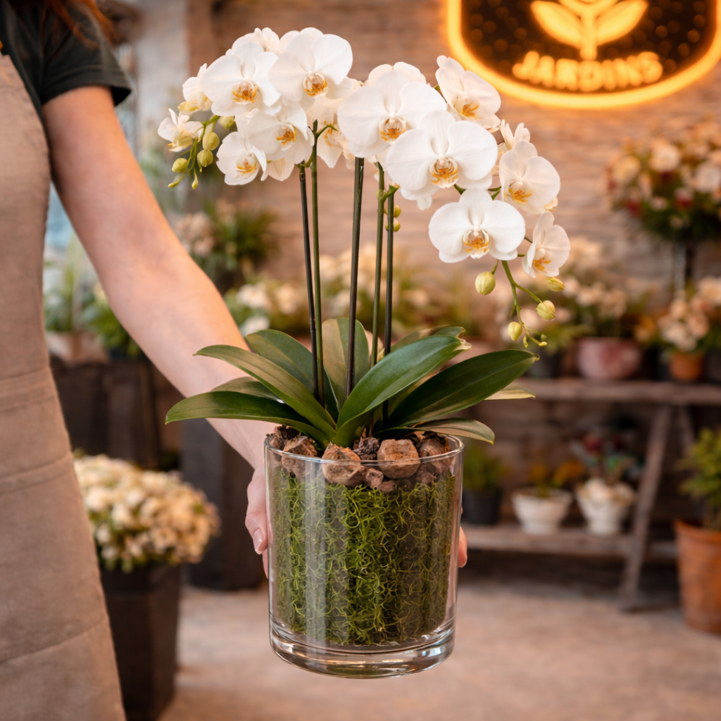 Na Floricultura Jardins, cada arranjo é feito com carinho pra ser único. A gente usa flores bem fresquinhas e combinações diferentes pra encantar de verdade.